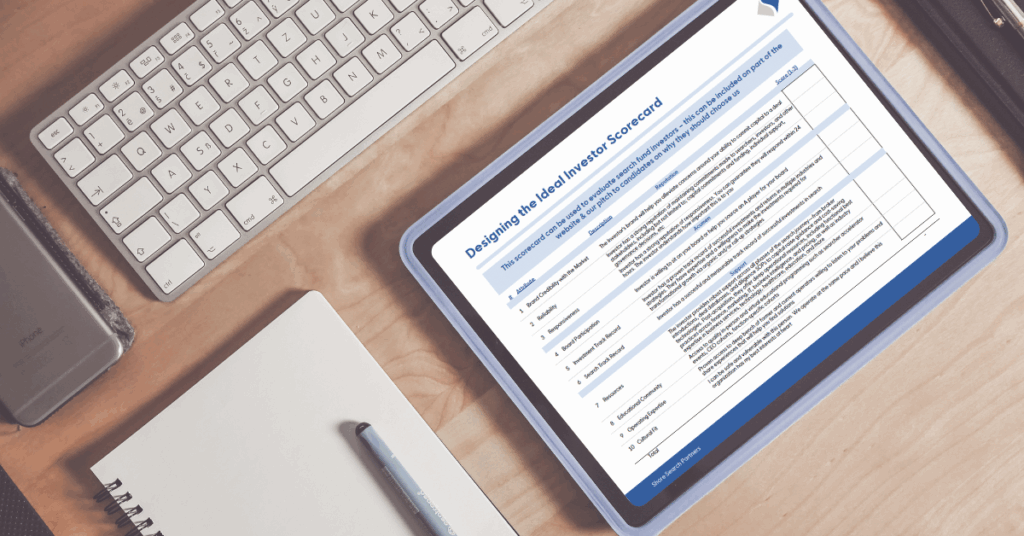 We recommend searchers use a scorecard to evaluate their investors based on:
